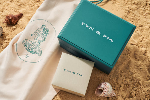 Signature Fyn & Fia debossed gold foil logo with leather hang tag