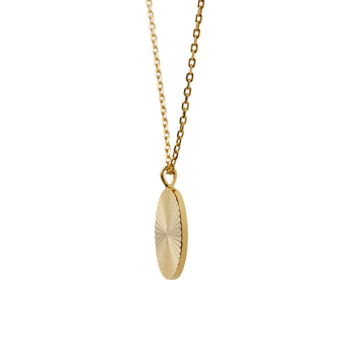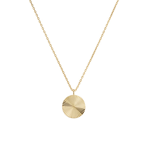 Paperclip cable chain with sunburst fluted-texture gold pendant
