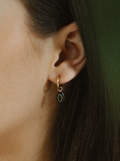 Fyn & Fia’s Miley earrings encapsulate the essence of elegance. This stunning set features marquise-cut malachite stones dangling from luxurious 18K gold-plated silver hoops. Malachite symbolizes transformation and positive energy, bringing you a sense of balance and harmony. Perfect for any occasion, the classic simplicity of the Miley earrings ensures your inner beauty shines.