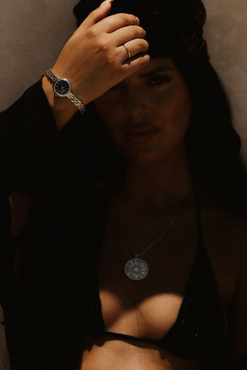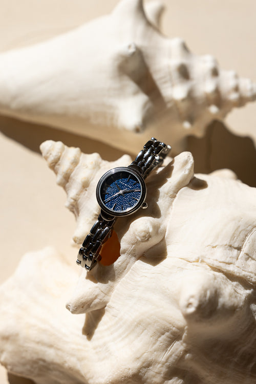 Experience unparalleled style with Fyn & Fia’s Oceania watch in Silver. Featuring precision Swiss quartz movement, this exquisite timepiece is crafted from stainless steel enrobed in luxurious gold plating, finished in an elegant silver to complement the shimmering iridescence of the ocean blue Mother of Pearl dial. Water-resistant and scratch-proof, this stunning watch suits any occasion, and is an enduring accessory sure to last from one generation to the next.