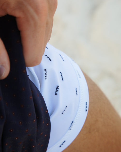 The classic FYN trunk design in our new Rocki Trunk print with a reflective red string. Our polyester stretch blend makes it easy for you to move, while the inner built-in ball pouch brief keeps the control.