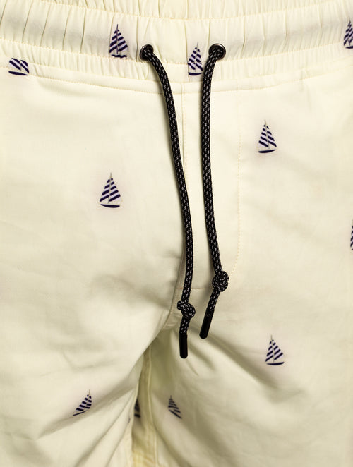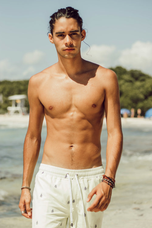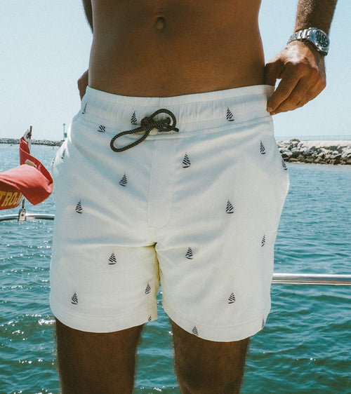 The classic FYN trunk design in our new sail print with a reflective black string. Our polyester stretch blend makes it easy for you to move, while the inner built-in ball pouch brief keeps the control.