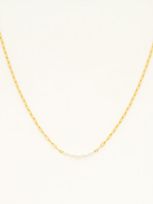 Sophistication at its finest, the Savannah necklace adds grandeur to any ensemble. The silver gold-plated paperclip chain necklace showcases five statement pearls, each graduated in size to highlight their allure. Whether paired with a simple blouse or a high-end outfit, the Savannah necklace is as versatile as it is beautiful.
