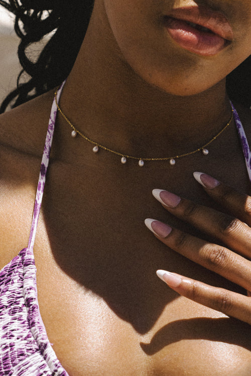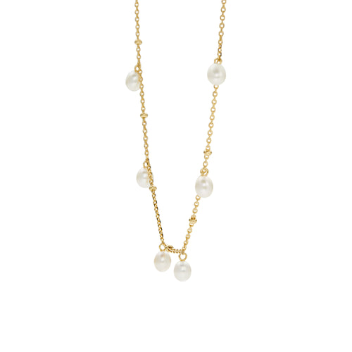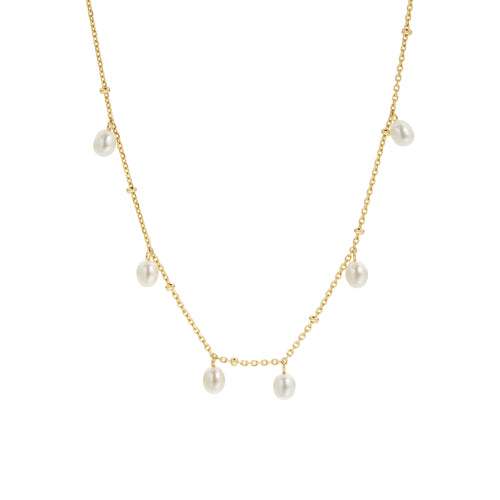 The epitome of elegance, the Siena necklace is an enduring piece you'll wear on repeat. Suspended along a delicate 18K gold vermeil cable and ball chain sit six fine pearls, each positioned to maximize movement. This beautiful piece works just as well as a layering or standalone accessory, ensuring the graceful allure of pearls are a stunning addition to any outfit.