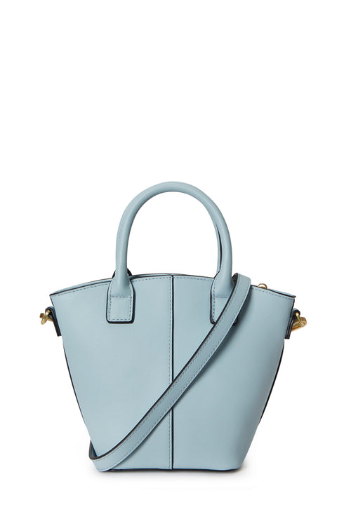The Sorrento Clamshell handbag in baby blue is an exquisite accessory for any occasion. Its unique silhouette merges classic lines with contemporary elegance and comes with a spacious interior and an adjustable leather strap for versatile carrying options. Bronze-toned hardware and a gold foil debossed Fyn & Fia logo complete this timeless piece.